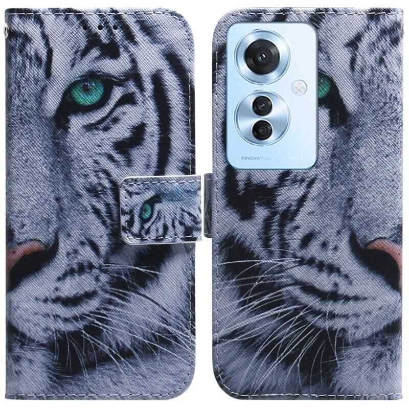 Θήκη τηλεφώνου από δέρμα με αναδιπλούμενο σχέδιο και πολύχρωμη ζωγραφική για OPPO F25 Pro 5G (Τίγρη)