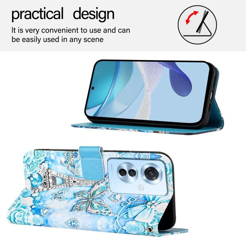 Θήκη τηλεφώνου από δέρμα με απλή ύφανση και πολύχρωμο σχέδιο για OPPO F25 Pro 5G India (Πεταλούδα Πύργου)
