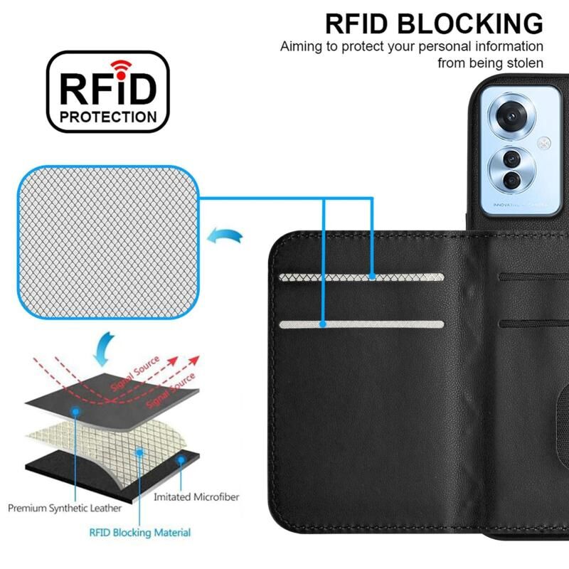 Για OPPO F25 Pro 5G Ινδία Rhombic υφή κάρτα τσάντα RFID υπόθεση τηλεφώνου με μακρύ κορδόνι (Μαύρο)