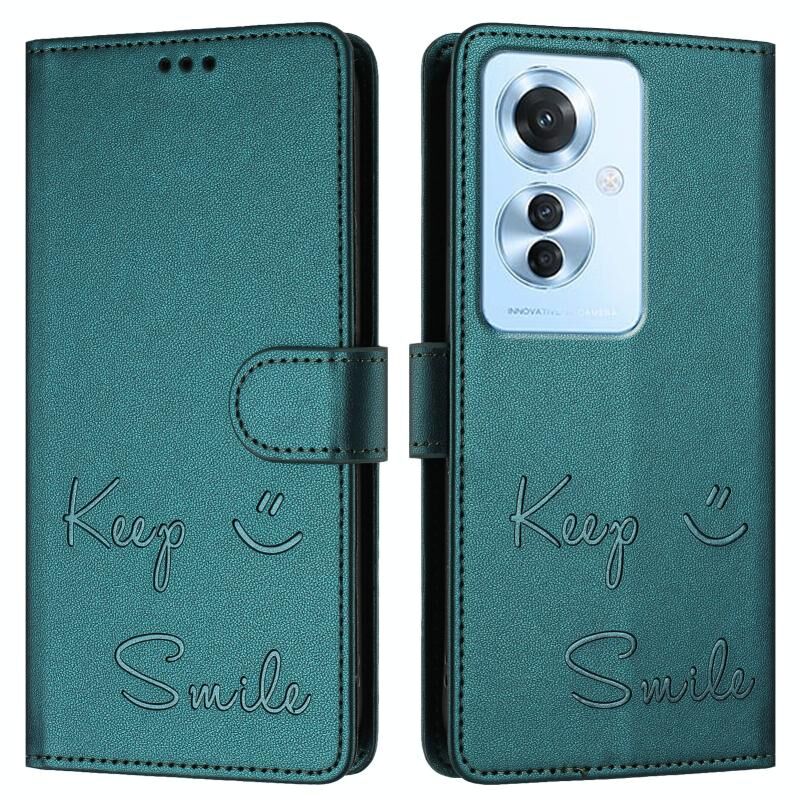 Για OPPO F25 Pro 5G Ινδία χαμόγελο ανάγλυφο RFID δερμάτινη θήκη τηλεφώνου (Peacock Green)