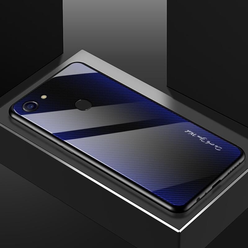 Για OPPO F5 Υφή διαβάθμιση γυαλί Προστατευτική θήκη (σκούρο μπλε)