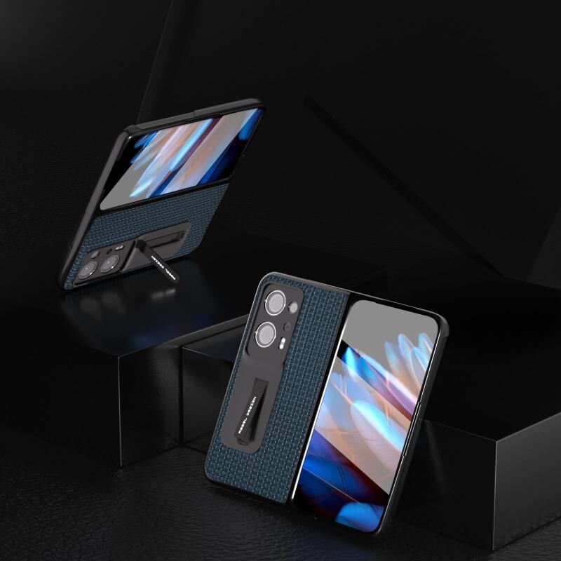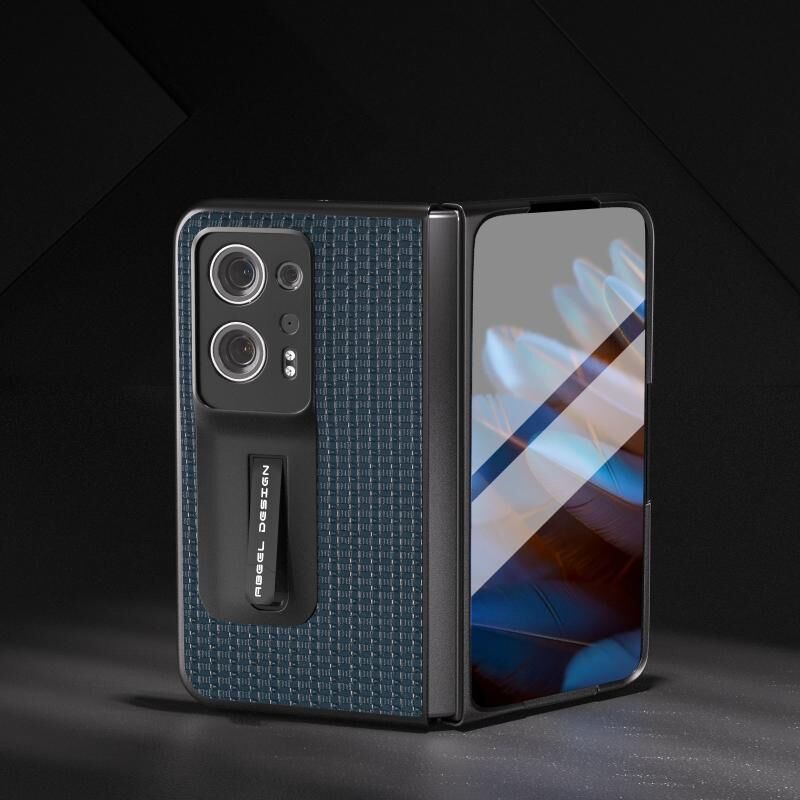 Θήκη τηλεφώνου OPPO Find N2 ABEEL, αυθεντικό δέρμα πολυτελούς σειράς με βάση στήριξης (Βασιλικό μπλε)