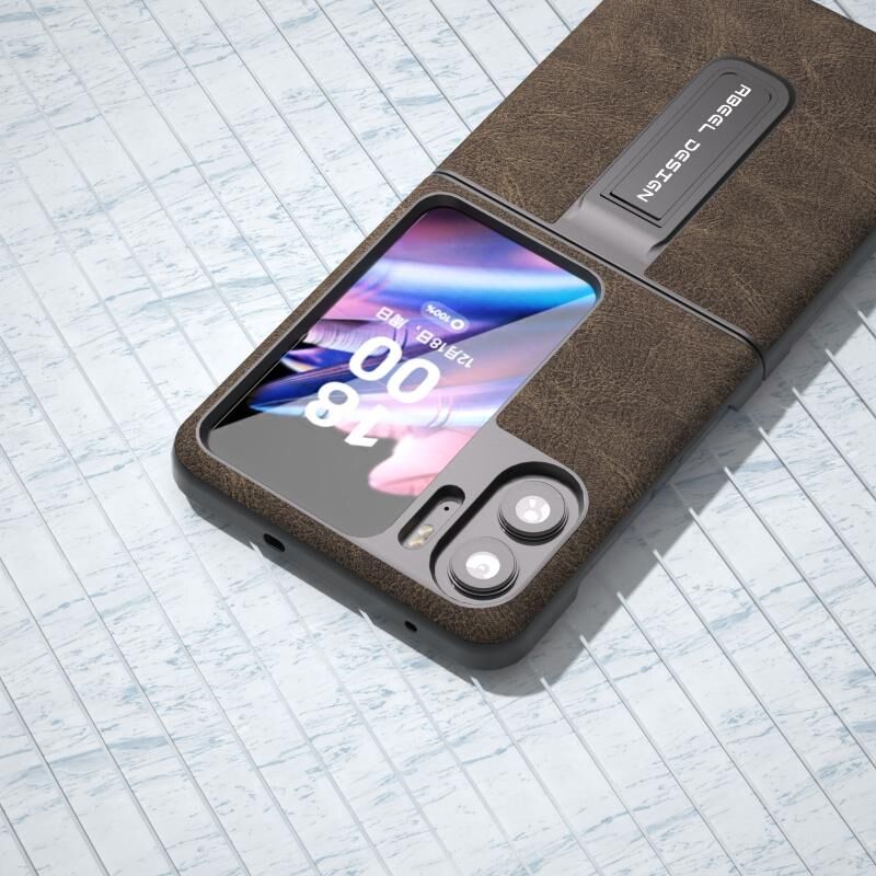 Θήκη τηλεφώνου OPPO Find N2 Flip ABEEL Dream με υφή Lychee PU με βάση στήριξης (Χακί)