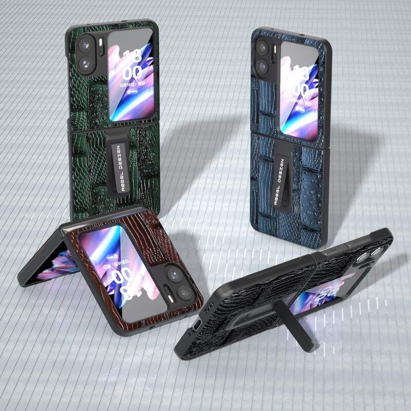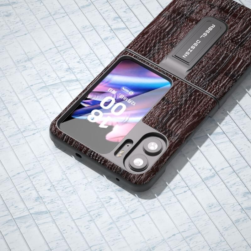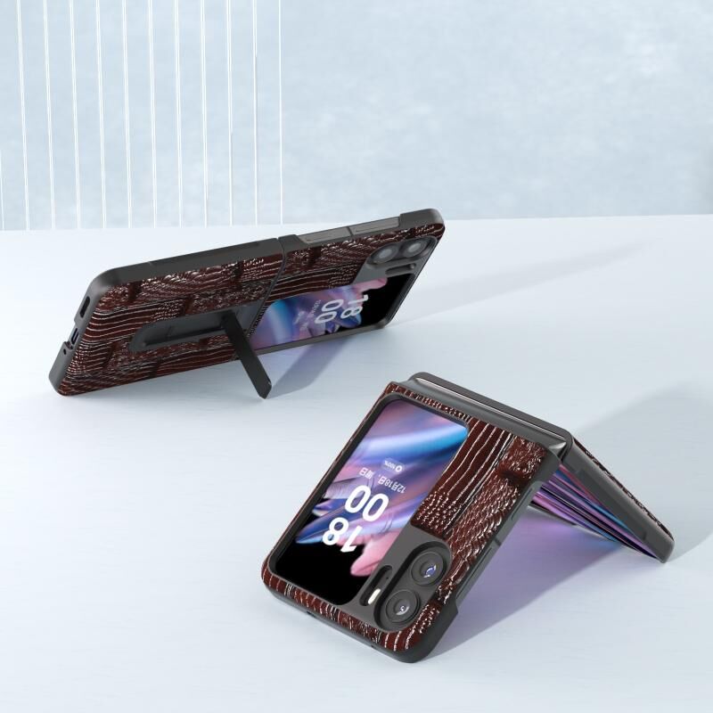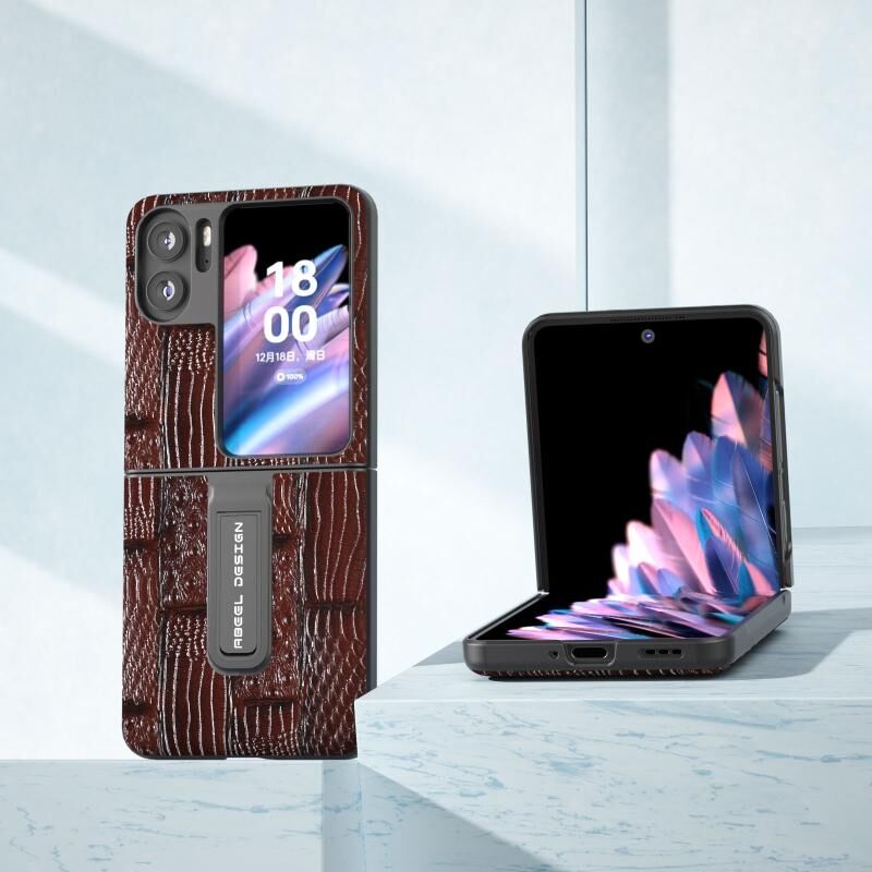 Θήκη τηλεφώνου από γνήσιο δέρμα για OPPO Find N2 Flip ABEEL, σειρά Mahjong με υφή, με βάση στήριξης (Καφέ)