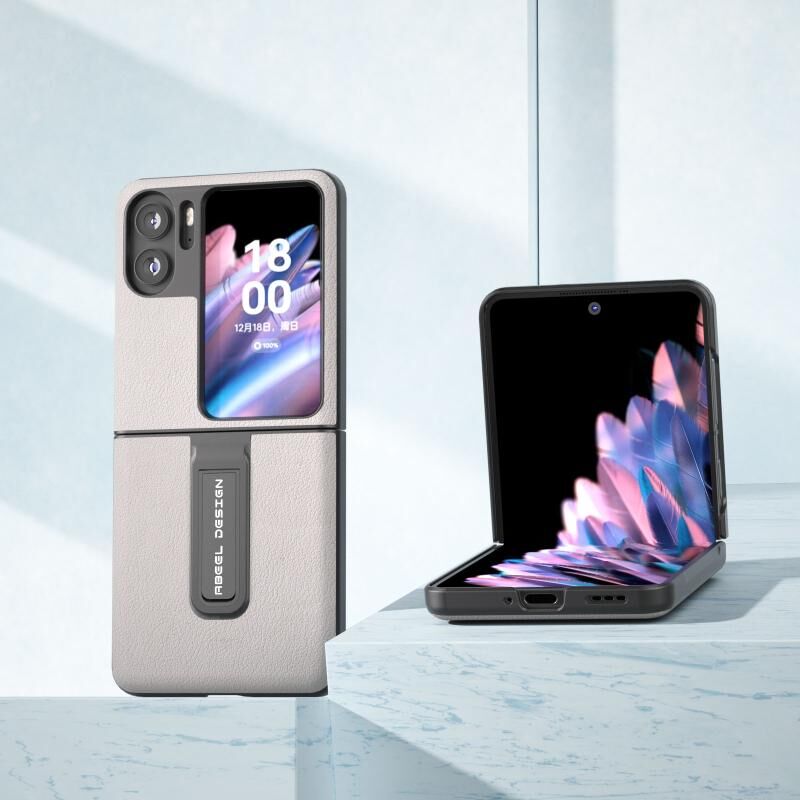 Θήκη τηλεφώνου από γνήσιο δέρμα OPPO Find N2 Flip ABEEL με κυματιστό σχέδιο και βάση στήριξης (Μαύρο)