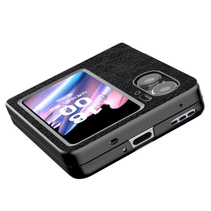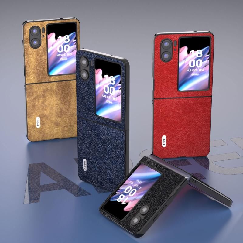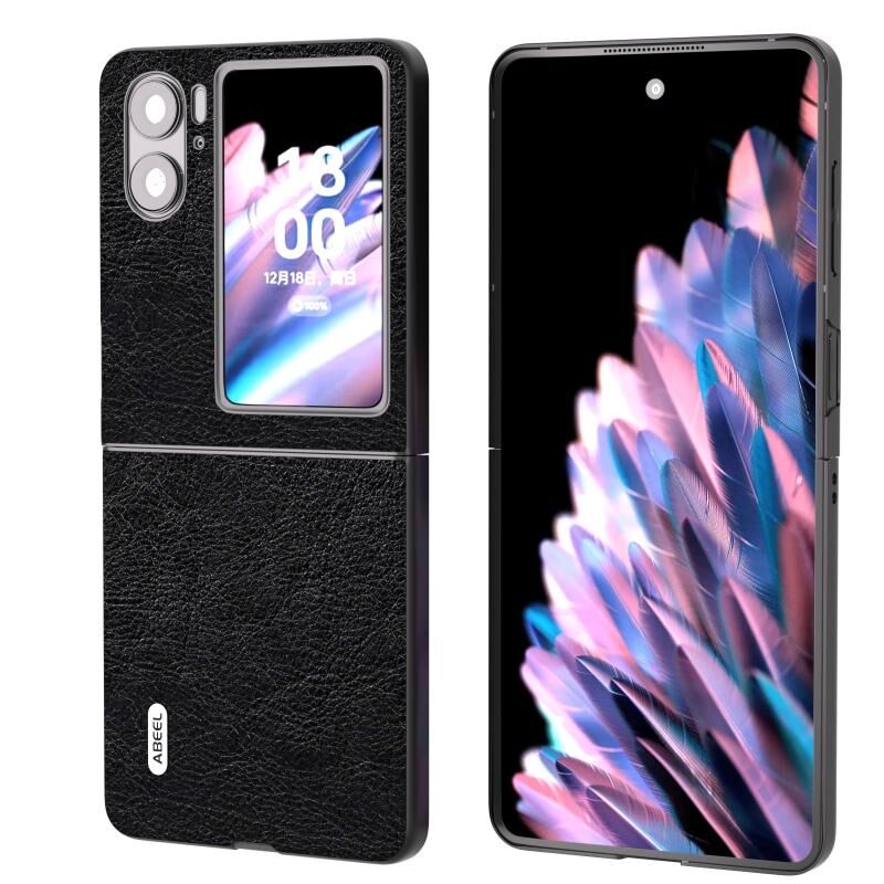 Θήκη τηλεφώνου OPPO Find N2 Flip ABEEL Ρετρό Υφή Δέρματος Λυτσί (Μαύρο)
