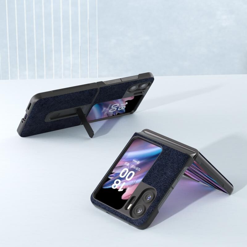 Θήκη τηλεφώνου OPPO Find N2 Flip ABEEL με υφή λυτσί retro PU και βάση στήριξης (Μπλε)