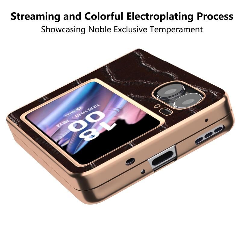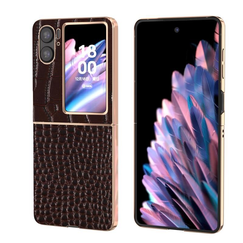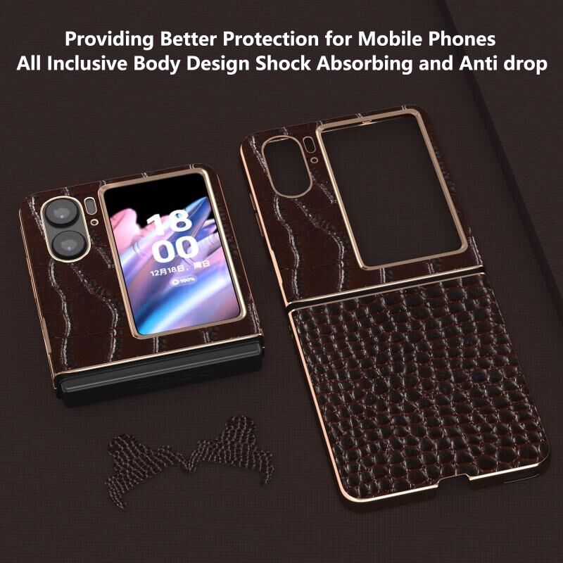 Θήκη τηλεφώνου OPPO Find N2 Flip με γνήσιο δέρμα υφής κροκόδειλου και νανο-επίχρυση (Καφέ)