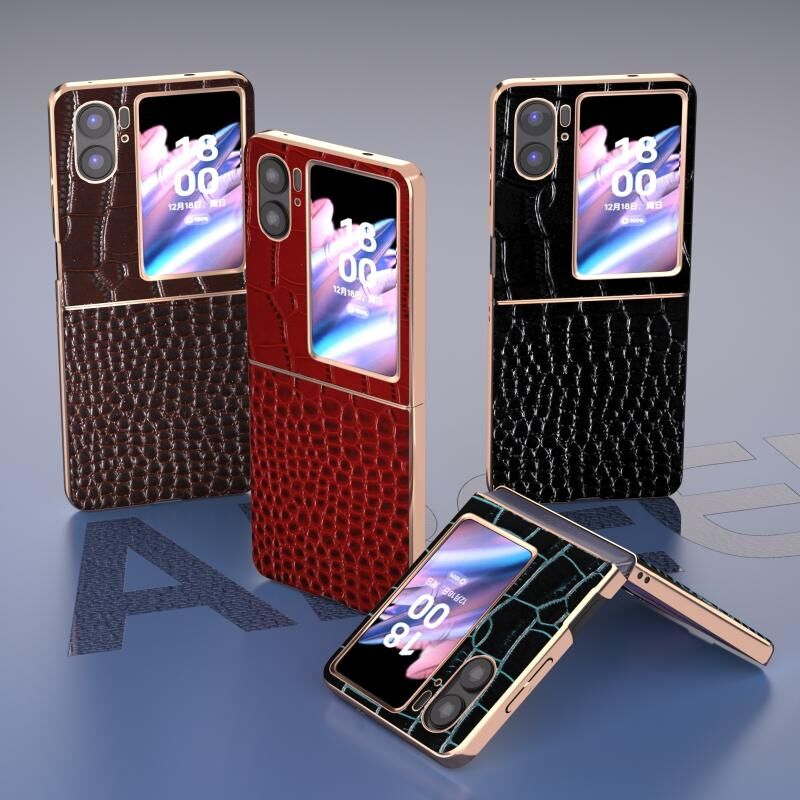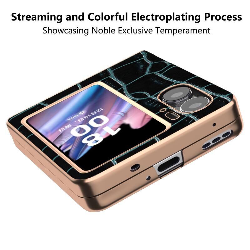 Θήκη τηλεφώνου OPPO Find N2 Flip με γνήσιο δέρμα υφής κροκόδειλου και νανο-επίχρυση (Σκούρο πράσινο)