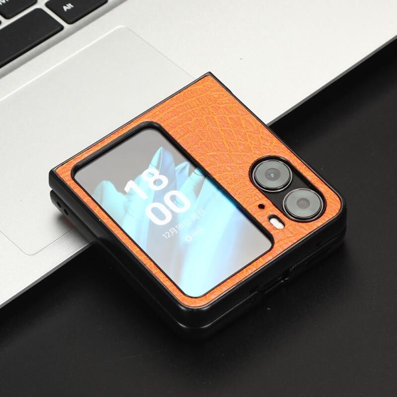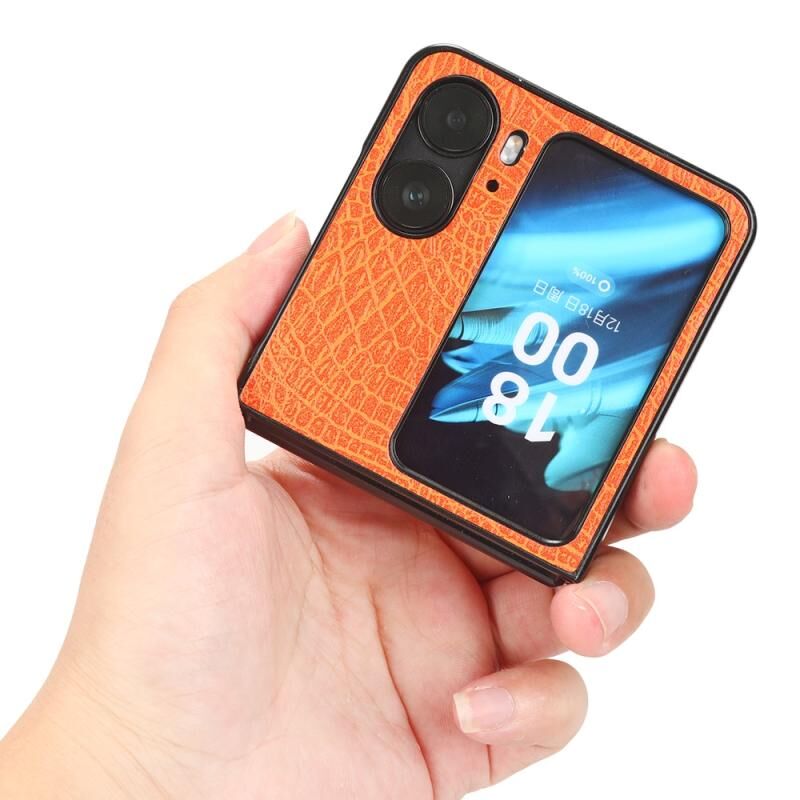 Θήκη τηλεφώνου με υφή κροκόδειλου για OPPO Find N2 Flip (Κίτρινο)