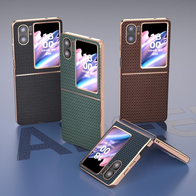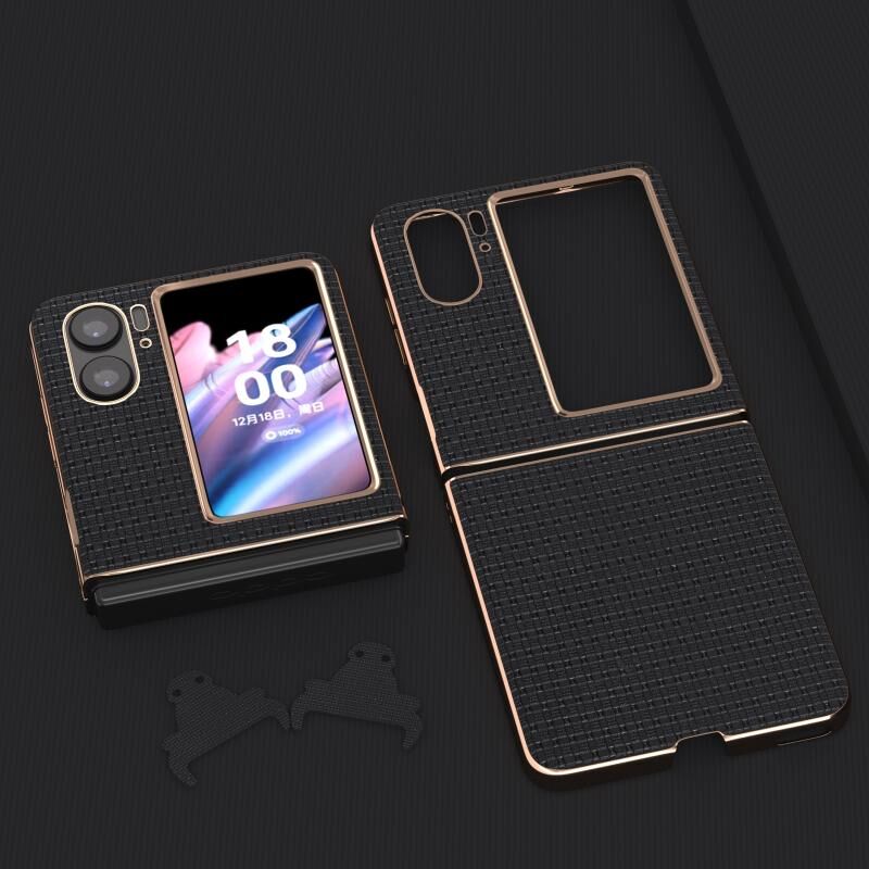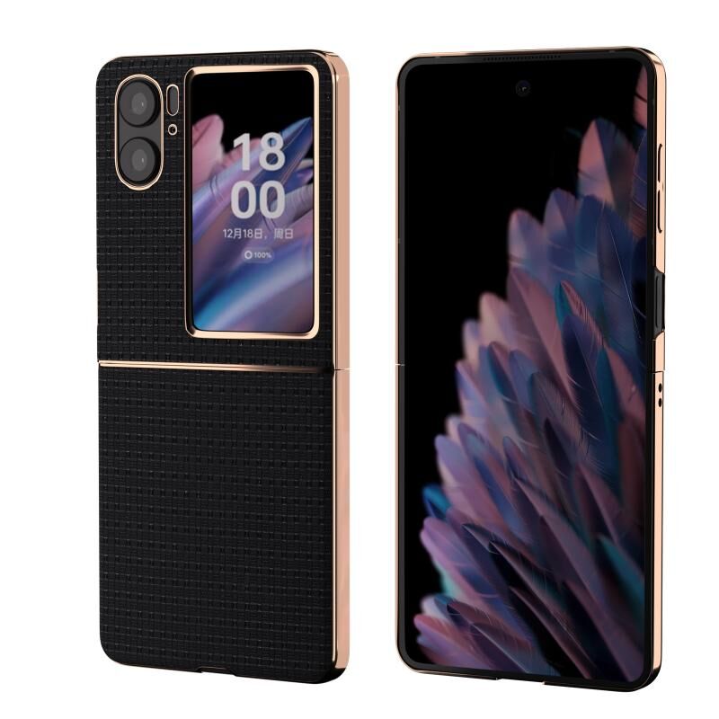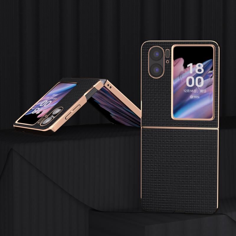 Θήκη τηλεφώνου από γνήσιο δέρμα πολυτελείας Nano Plating για OPPO Find N2 Flip (Μαύρο)
