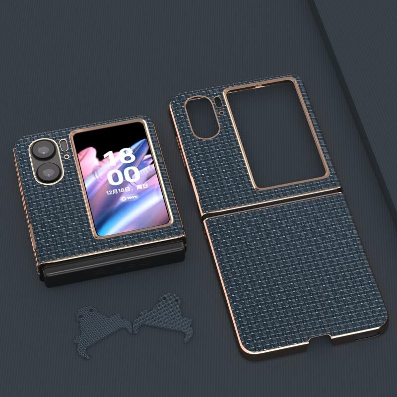 Θήκη τηλεφώνου από γνήσιο δέρμα πολυτελείας Nano Plating για OPPO Find N2 Flip (Βασιλικό μπλε)