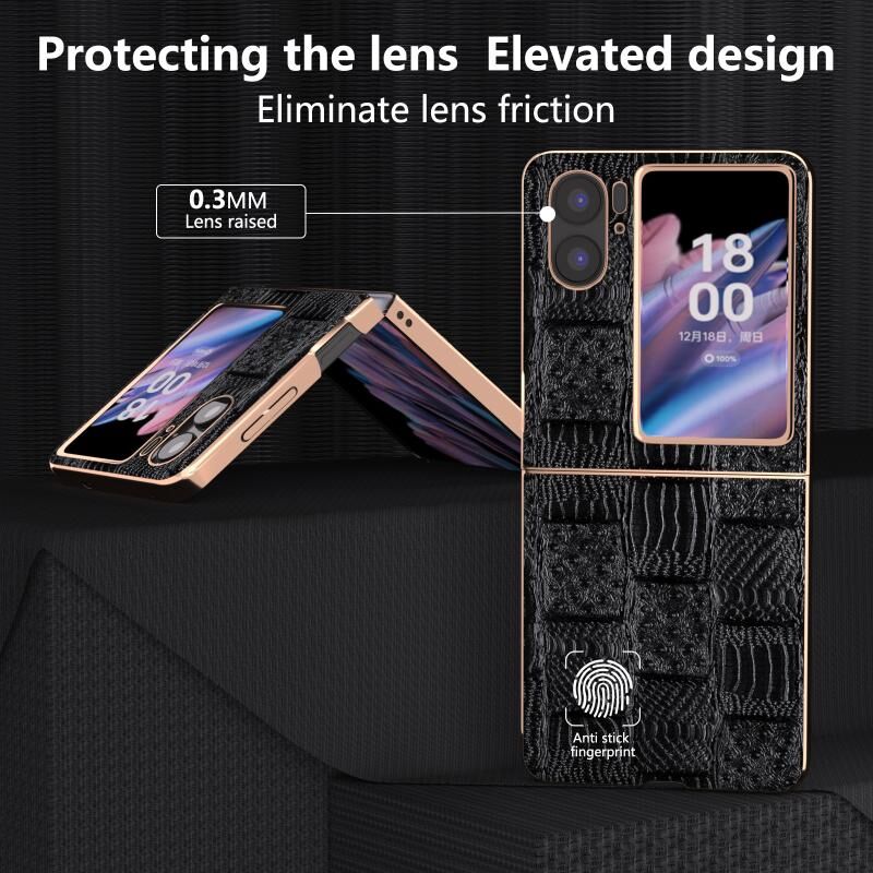 Θήκη τηλεφώνου από δέρμα με υφή Mahjong και ηλεκτρολυτική επίστρωση για OPPO Find N2 Flip Nano (Μπλε)