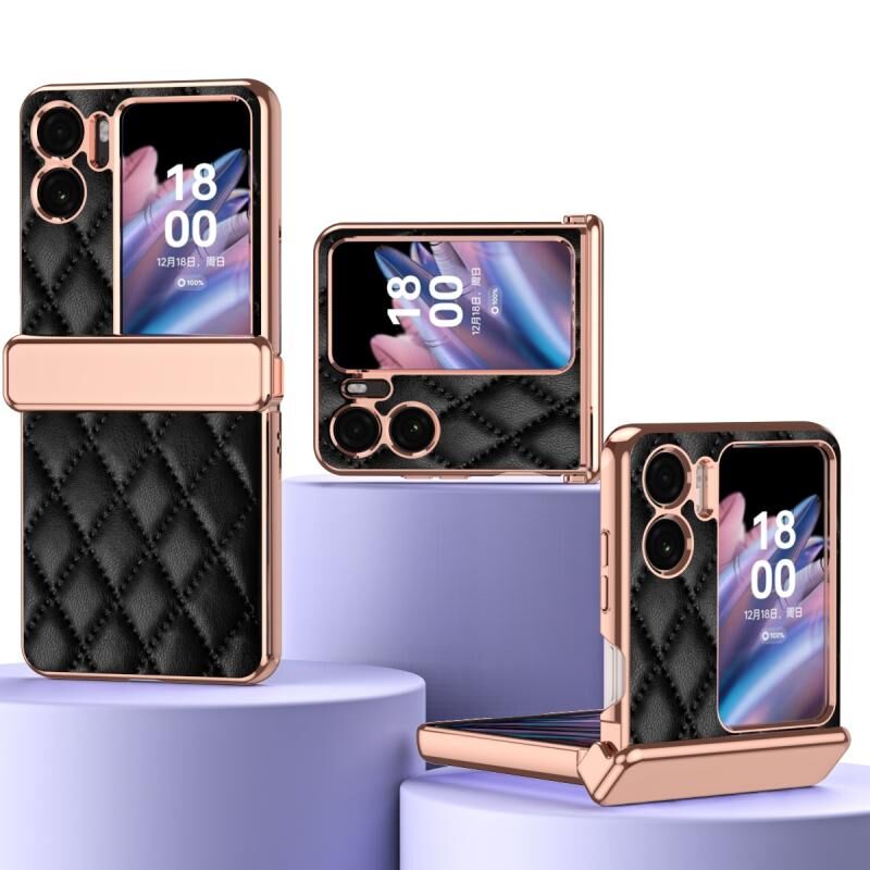 Για OPPO Find N2 Flip Rhombus Pattern Electroplated Plain δέρμα μαγνητική θήκη τηλεφώνου με μεντεσέ (Μαύρο)