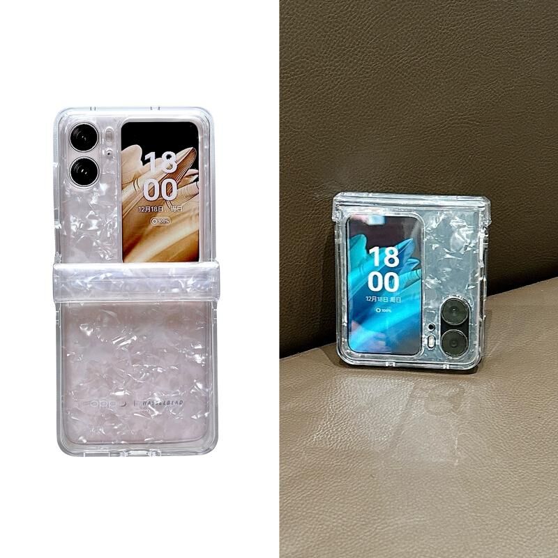 Για OPPO Βρείτε N2 Flip τριών τεμαχίων Set Pearlescent Shell Υφή τηλέφωνο υπόθεση (Λευκό)