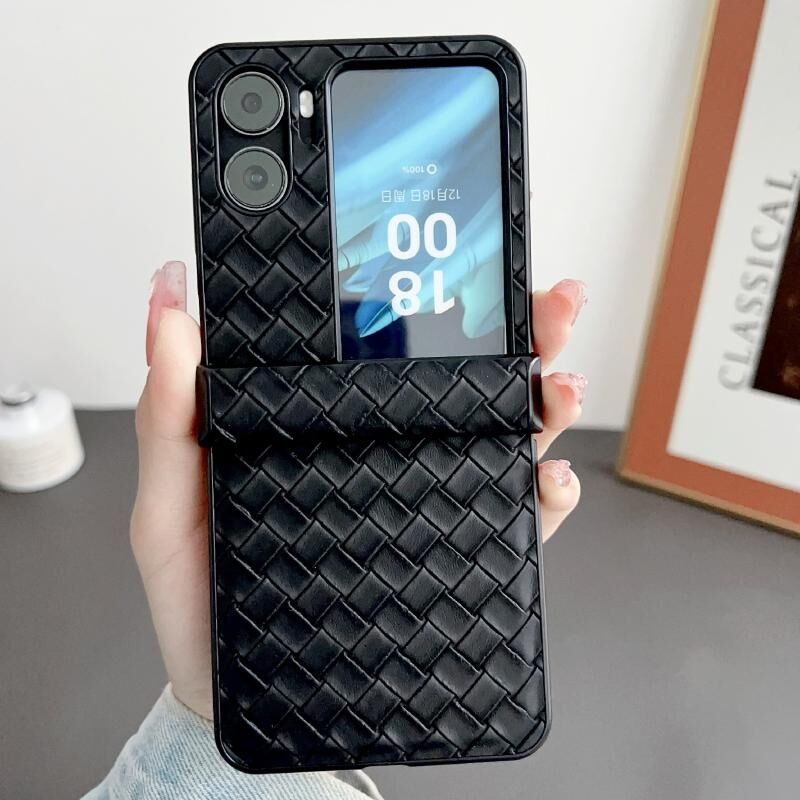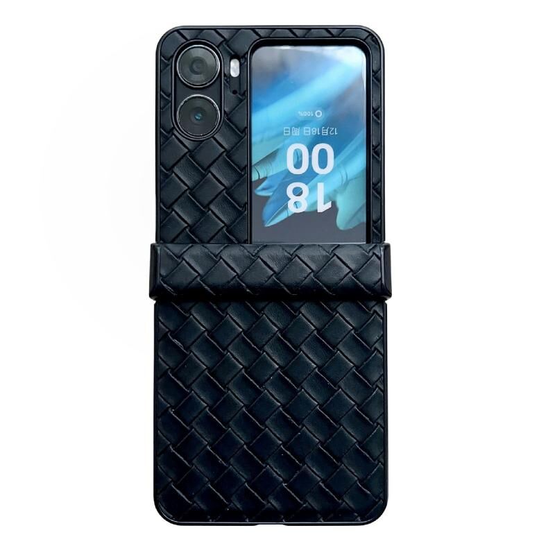 Για OPPO Find N2 Flip Σετ Τριών Τεμαχίων Θήκη Τηλεφώνου Πτυσσόμενη από PU με Υφή Υφαντού (Μαύρο)