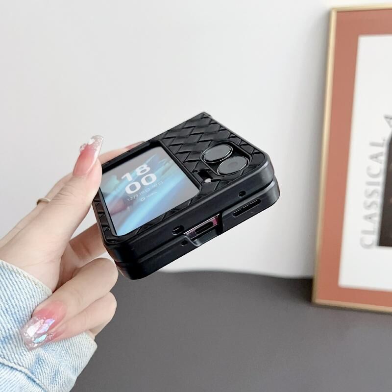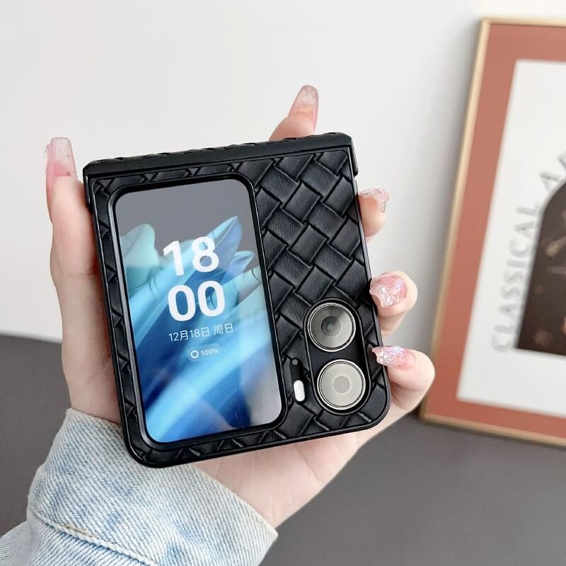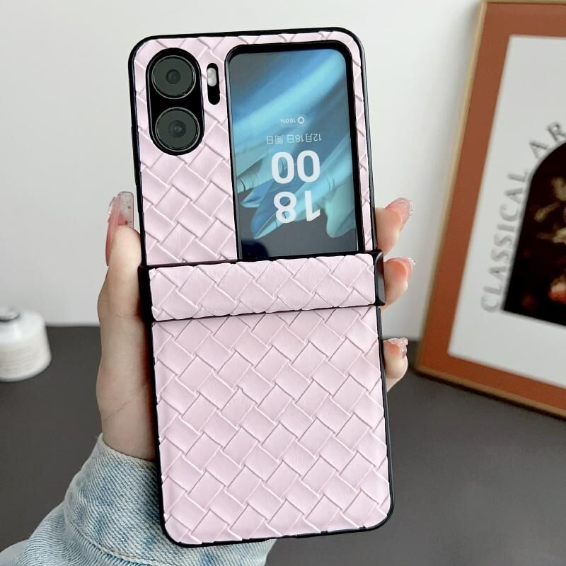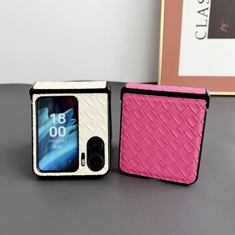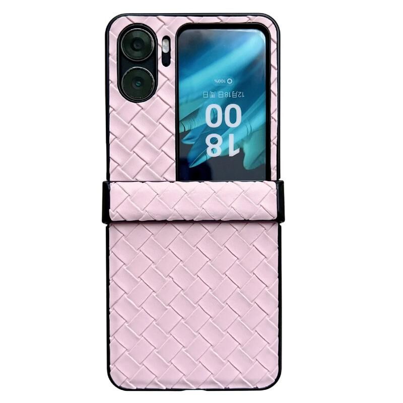Για OPPO Find N2 Flip Σετ Τριών Τεμαχίων Θήκη Τηλεφώνου Πτυσσόμενη από PU με Υφή Υφαντού (ρόζ)