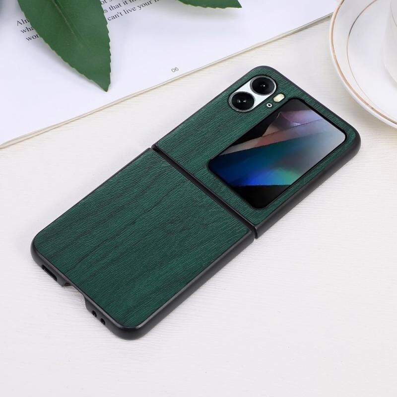 Για OPPO Βρείτε N2 Flip ξύλο υφή PU τηλέφωνο υπόθεση (πράσινο)