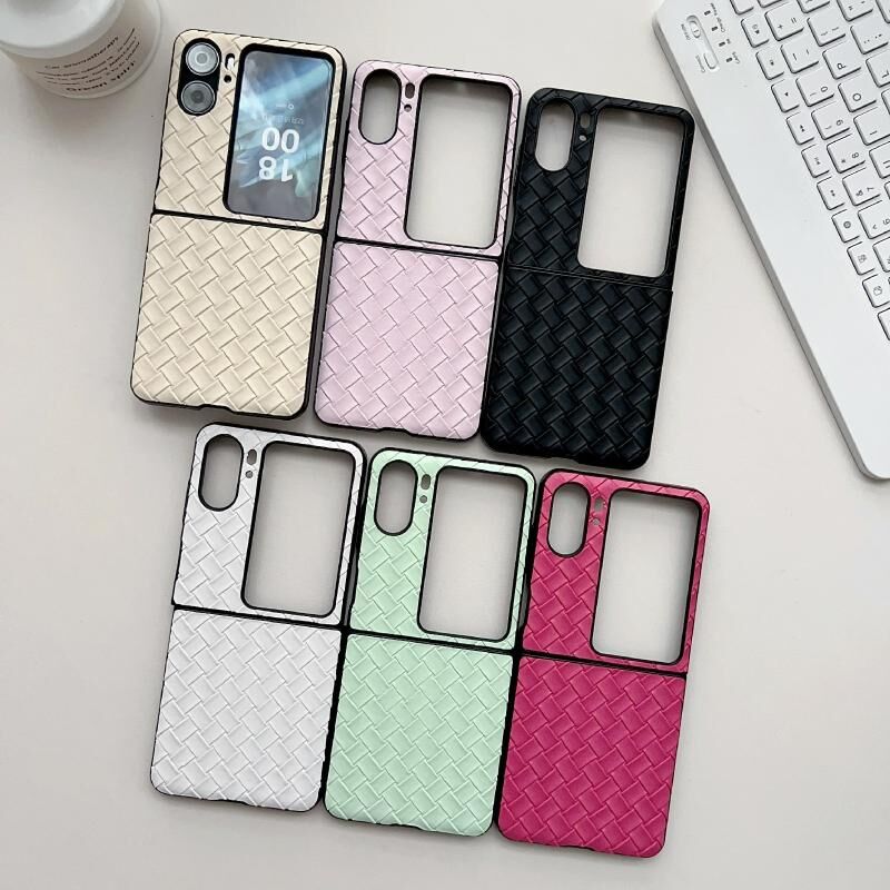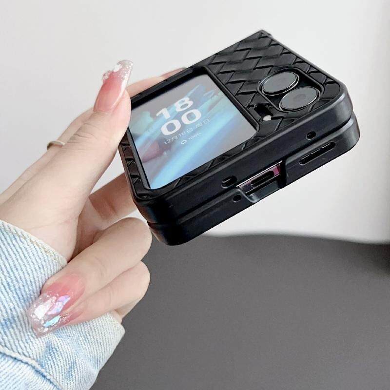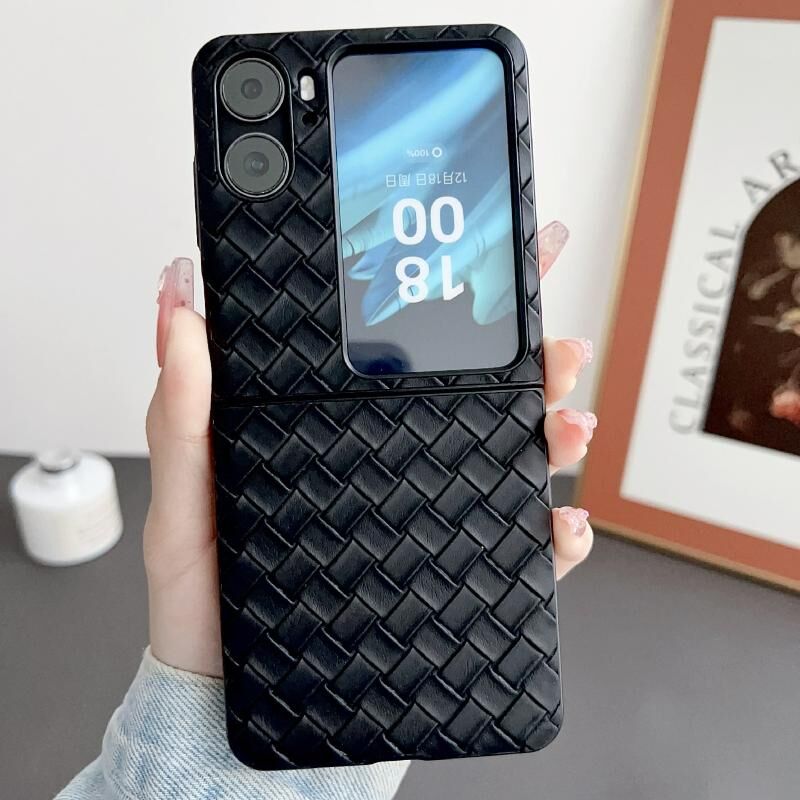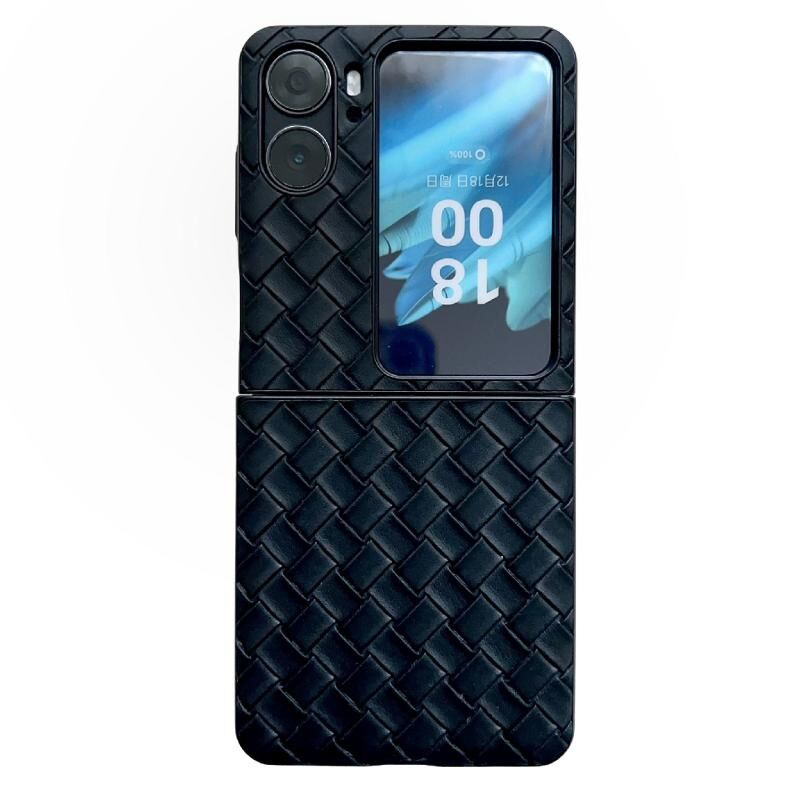 Θήκη τηλεφώνου OPPO Find N2 Flip με υφή υφαντού, αναδιπλούμενη από PU (Μαύρο)
