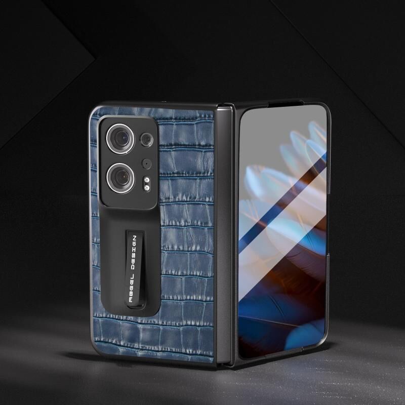 Θήκη τηλεφώνου από γνήσιο δέρμα με ενσωματωμένη υφή κροκόδειλου για OPPO Find N2 (Μπλε)