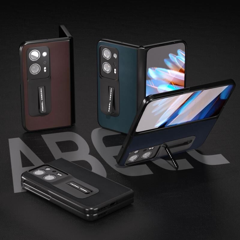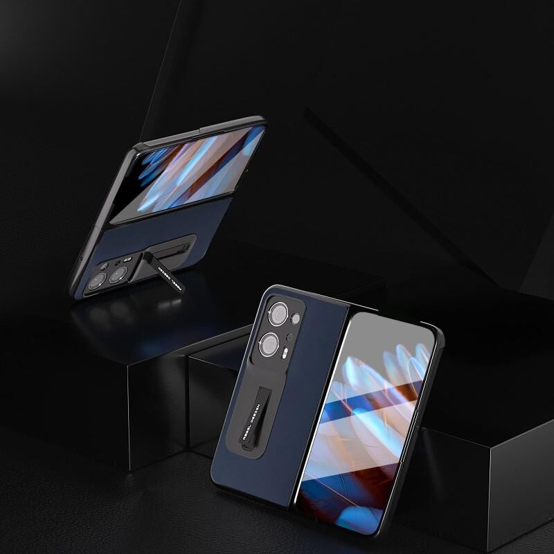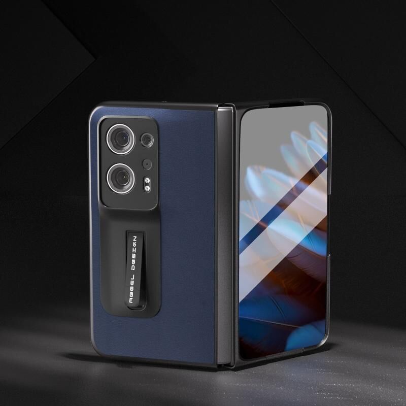Θήκη τηλεφώνου για OPPO Find N2 με ενσωματωμένο γνήσιο δέρμα σειρά Xiaoya με βάση στήριξης (Μπλε)