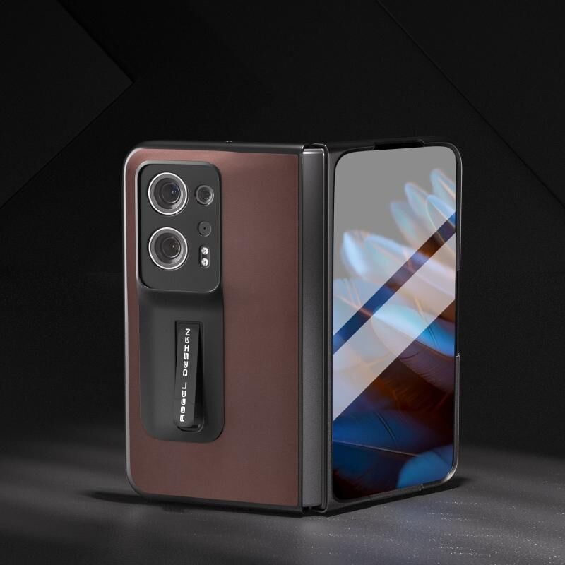 Θήκη τηλεφώνου για OPPO Find N2 από γνήσιο δέρμα σειρά Xiaoya με βάση στήριξης (Καφέ)