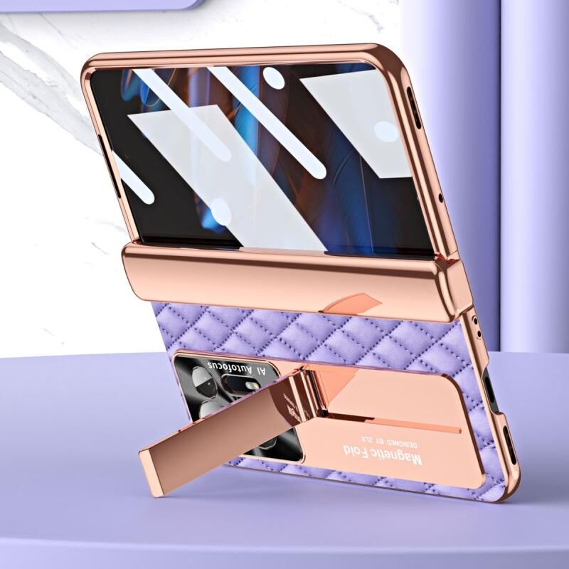 Για OPPO Find N2 Rhombus μοτίβο Electroplated απλό δέρμα τηλέφωνο υπόθεση με μεντεσέ (Μπλε)