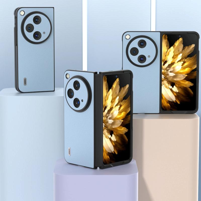 For OPPO Find N3 ABEEL Genuine Leather Wave Black Edge Phone Case(Blue)