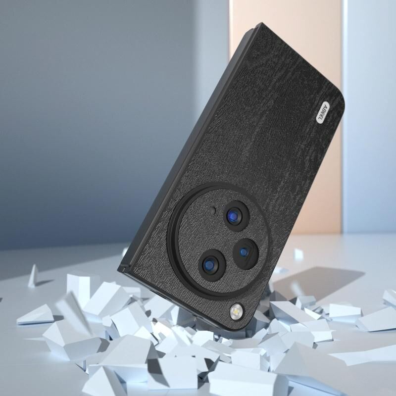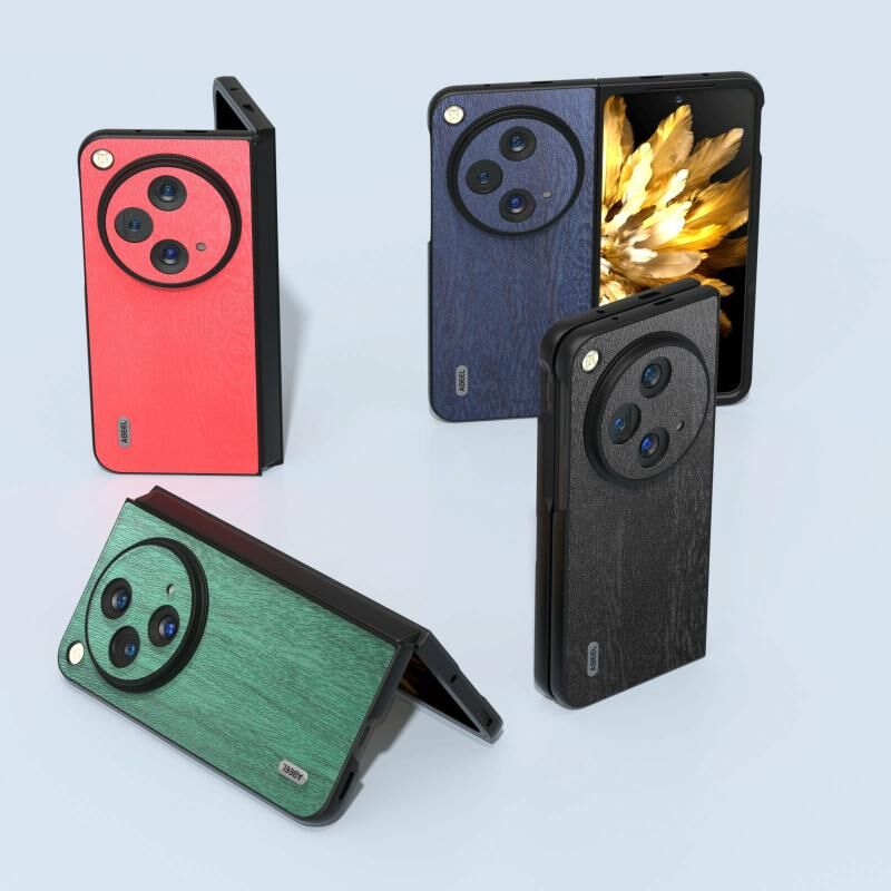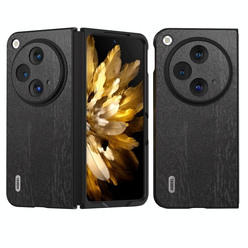 Θήκη τηλεφώνου OPPO Find N3 ABEEL με υφή ξύλου από PU (Μαύρο)