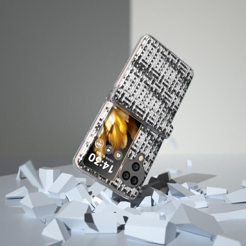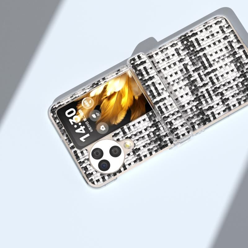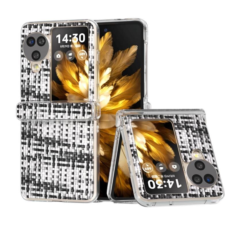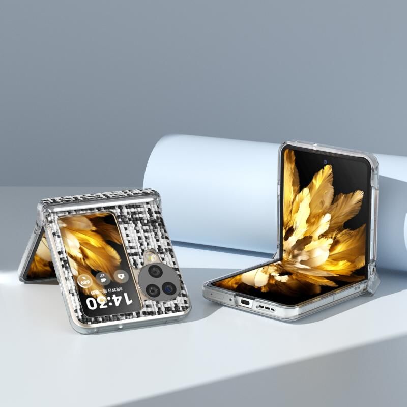Για OPPO Βρείτε N3 Flip 3 σε 1 πολύχρωμο Rhombic υφή διαφανές πλαίσιο PU τηλέφωνο υπόθεση (Μαύρο Λευκό)