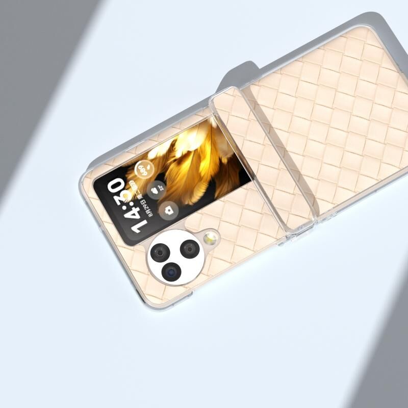 Για OPPO Βρείτε N3 Flip 3 σε 1 υφαντά υφή διαφανές πλαίσιο PU τηλέφωνο υπόθεση (Μπεζ)