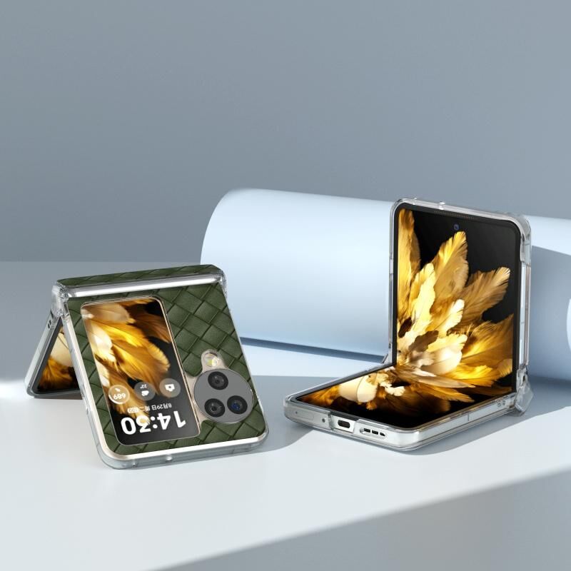 Για OPPO Βρείτε N3 Flip 3 σε 1 υφαντά υφή διαφανές πλαίσιο PU τηλέφωνο υπόθεση (πράσινο)