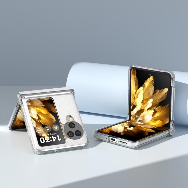 Για OPPO Βρείτε N3 Flip 3 σε 1 υφαντά υφή διαφανές πλαίσιο PU τηλέφωνο υπόθεση (λευκό)