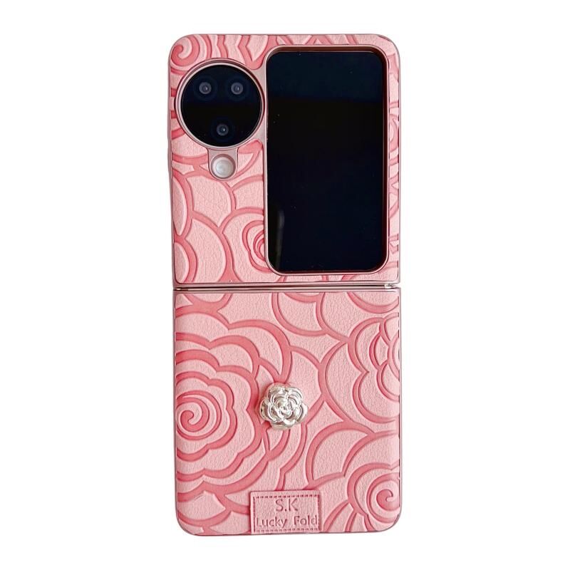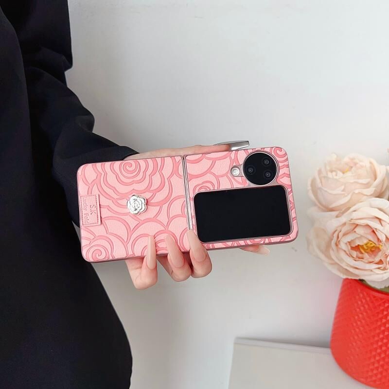 Θήκη τηλεφώνου OPPO Find N3 Flip 3D Καμέλια Πλαίδιο Υφασμάτινη DIY PC (Λευκό)