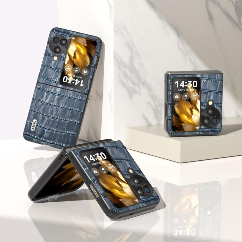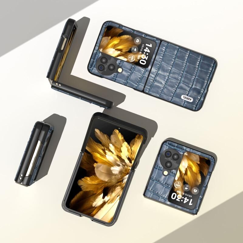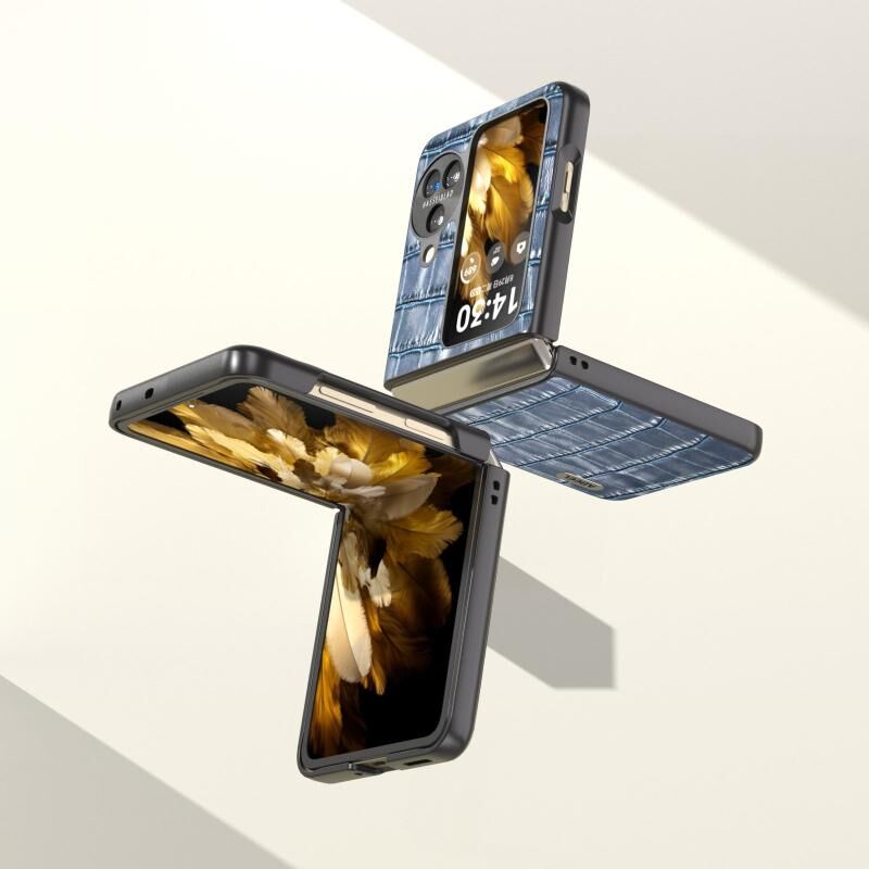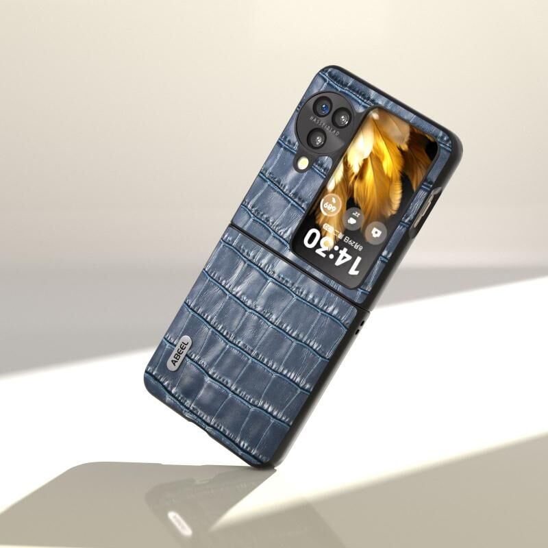 Θήκη τηλεφώνου από γνήσιο δέρμα με υφή κροκόδειλου για OPPO Find N3 Flip ABEEL (Μπλε)