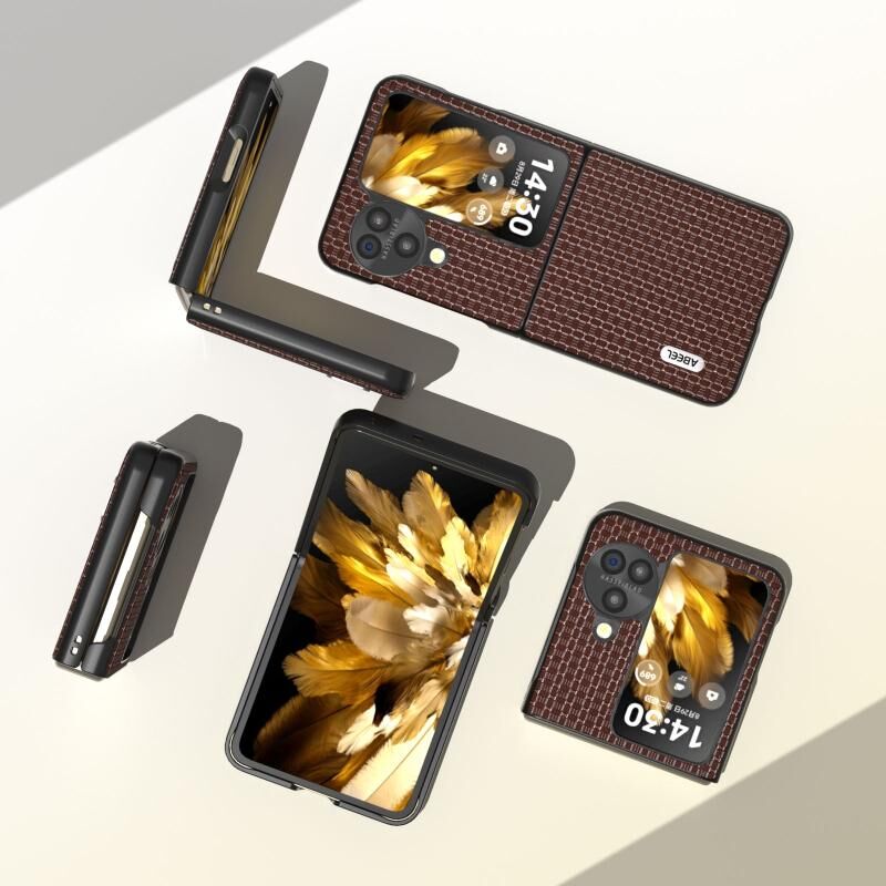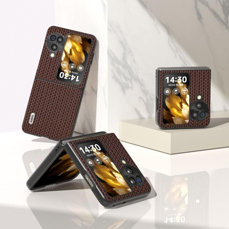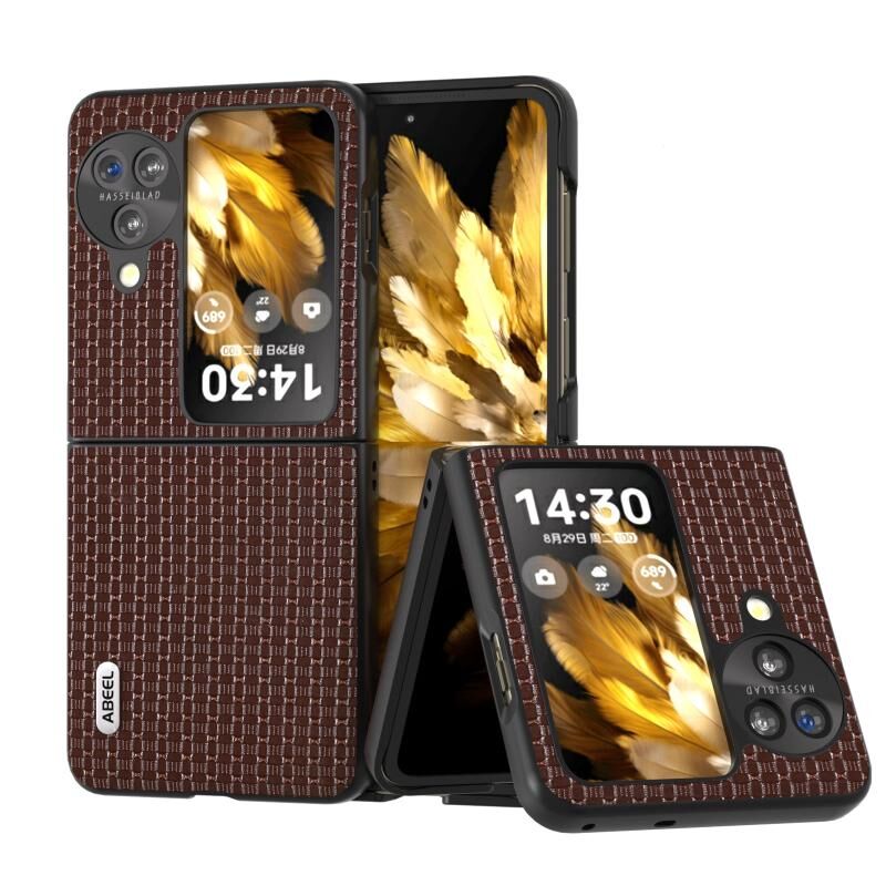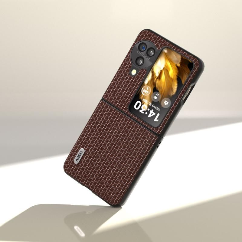 Θήκη τηλεφώνου OPPO Find N3 Flip ABEEL από γνήσιο δέρμα, πολυτελούς σειράς (Καφέ)