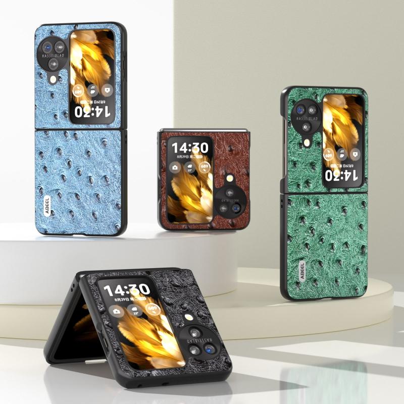 For OPPO Find N3 Flip ABEEL Genuine Leather Ostrich Texture Phone Case(Black)