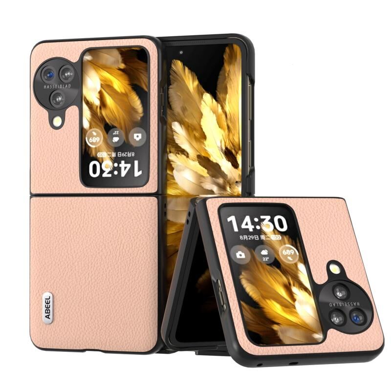 Θήκη τηλεφώνου από γνήσιο δέρμα + PC με υφή λυτσί για OPPO Find N3 Flip ABEEL (Ροζ Χρυσός)