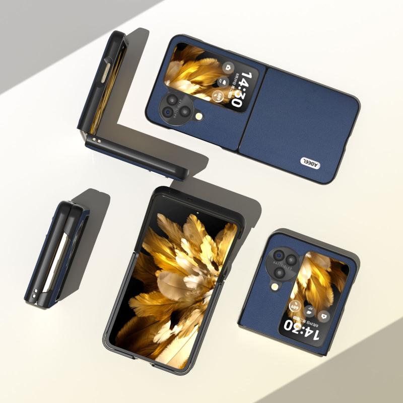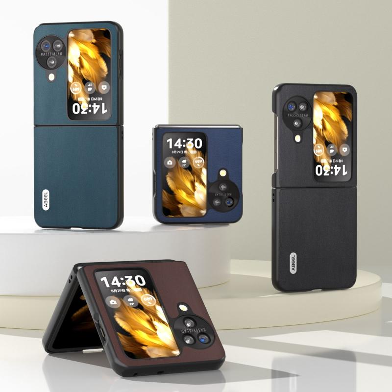Θήκη τηλεφώνου Xiaoya Series από γνήσιο δέρμα ABEEL για OPPO Find N3 Flip (Μπλε)