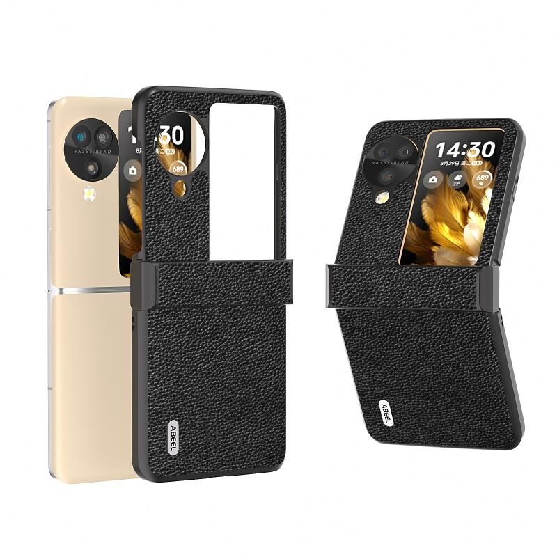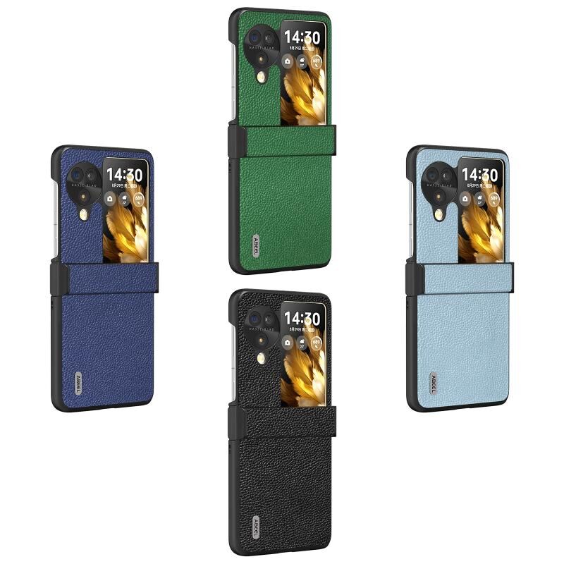 Θήκη τηλεφώνου Mino από γνήσιο δέρμα για OPPO Find N3 Flip ABEEL, με μαύρο περίγραμμα και αρθρωτό μηχανισμό (Royal Blue)