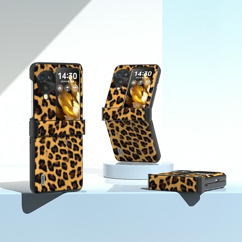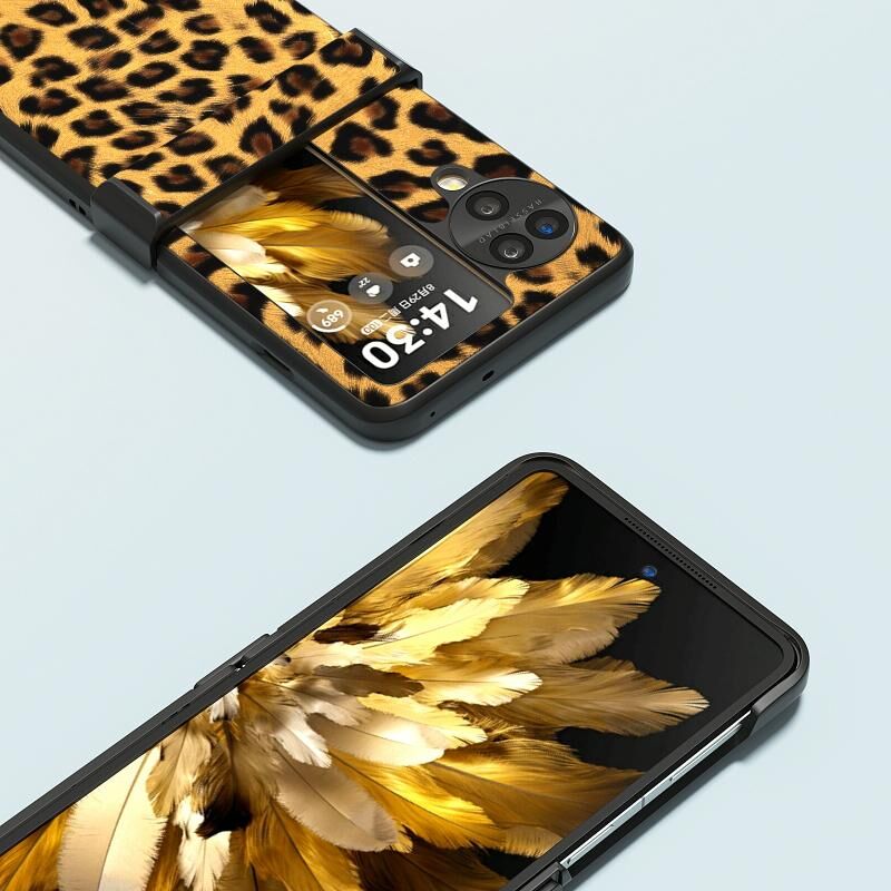 Θήκη τηλεφώνου για OPPO Find N3 Flip ABEEL, μεντεσέ, μαύρο περίγραμμα, λεοπάρ (Ασημί Λεοπάρ)