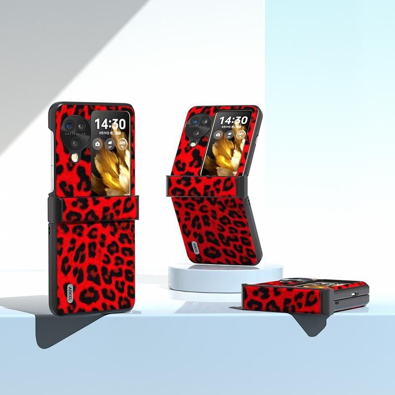 Θήκη τηλεφώνου για OPPO Find N3 Flip ABEEL, μεντεσέ, μαύρο περίγραμμα, λεοπάρ (Ασημί Λεοπάρ)