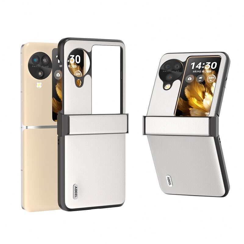 Θήκη τηλεφώνου για OPPO Find N3 Flip ABEEL Hinge, Γνήσιο Δέρμα, Κομψό Μαύρο Χείλος (Λευκό)