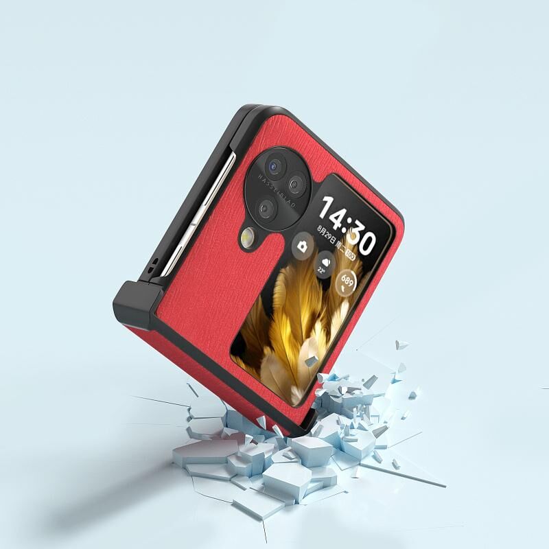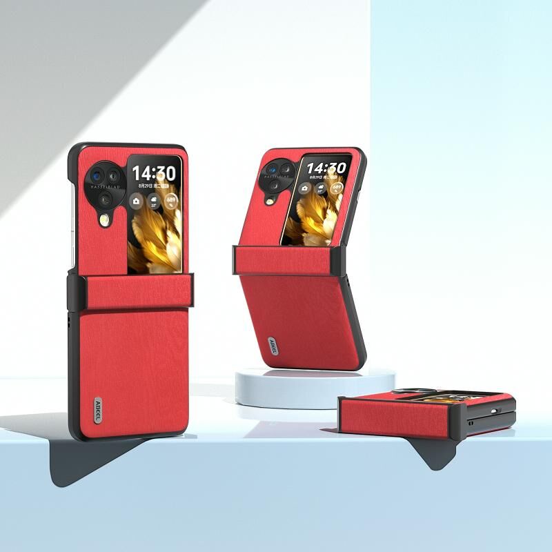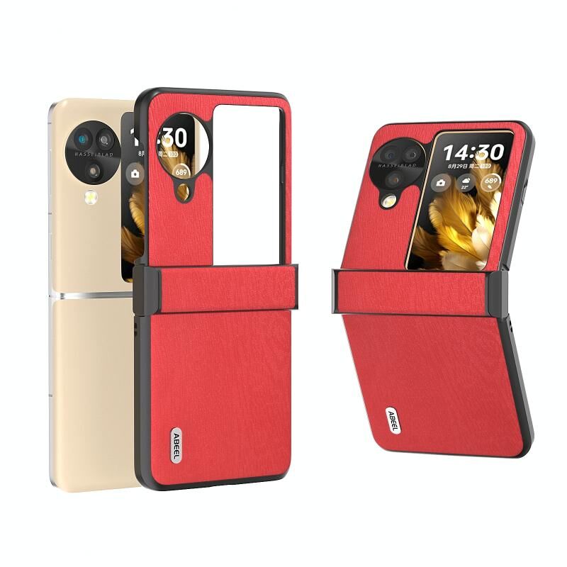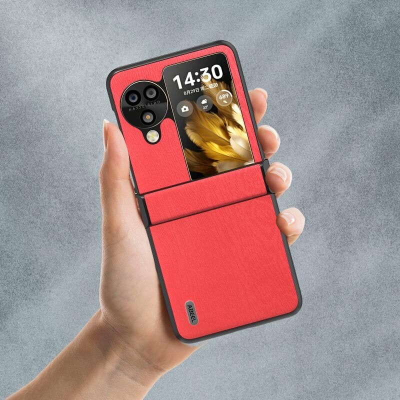Θήκη τηλεφώνου OPPO Find N3 Flip ABEEL με υφή ξύλου και PU (Κόκκινο)