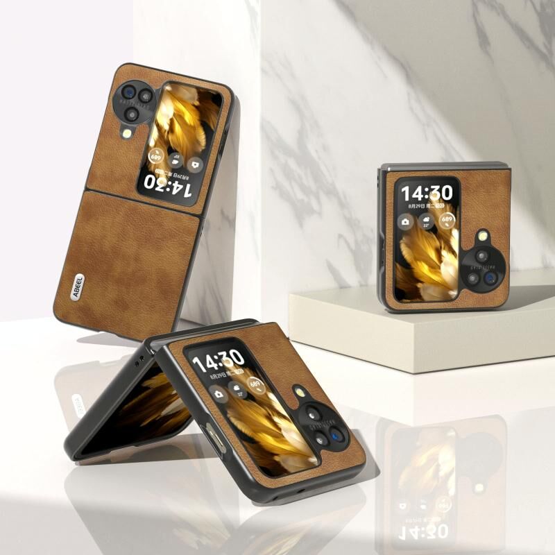 Θήκη τηλεφώνου OPPO Find N3 Flip ABEEL Ρετρό Υφή Δέρματος Λυτσί (Καφέ)