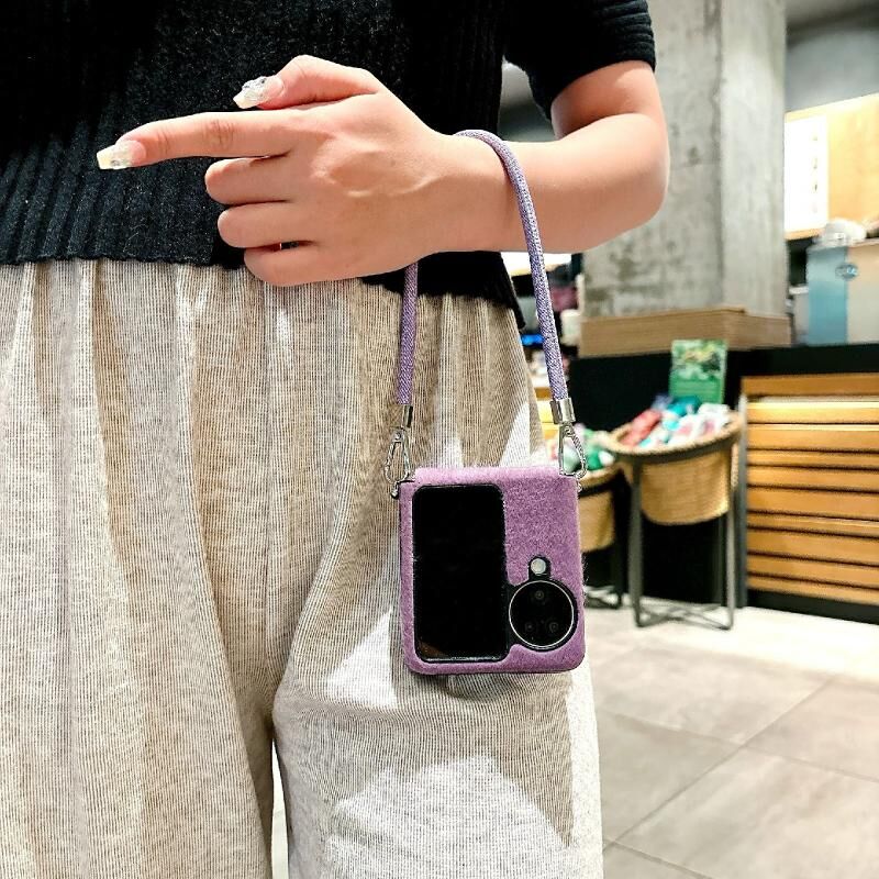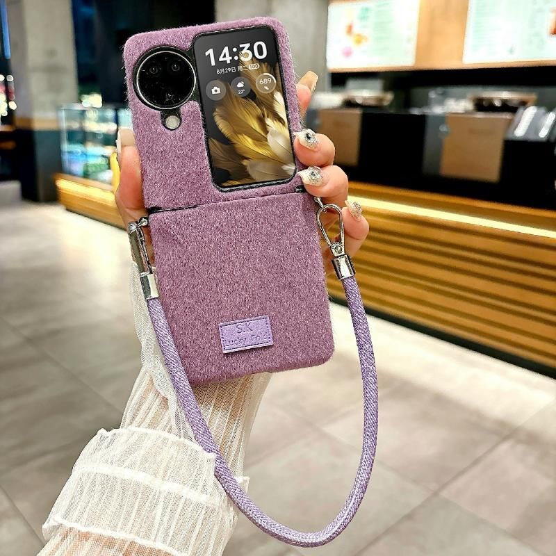 Θήκη τηλεφώνου OPPO Find N3 Flip με άνετο, κοντό βελούδο, πλήρη κάλυψη και λουρί καρπού (Μωβ)