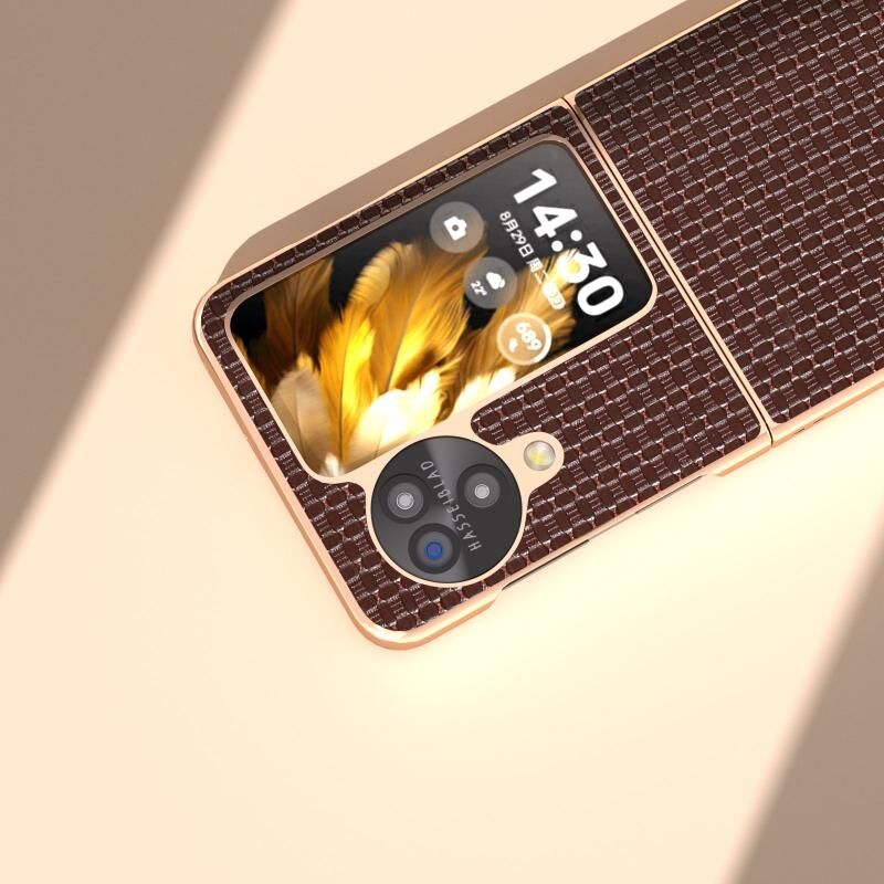Θήκη τηλεφώνου από γνήσιο δέρμα πολυτελείας Nano Plating για OPPO Find N3 Flip (Καφέ)