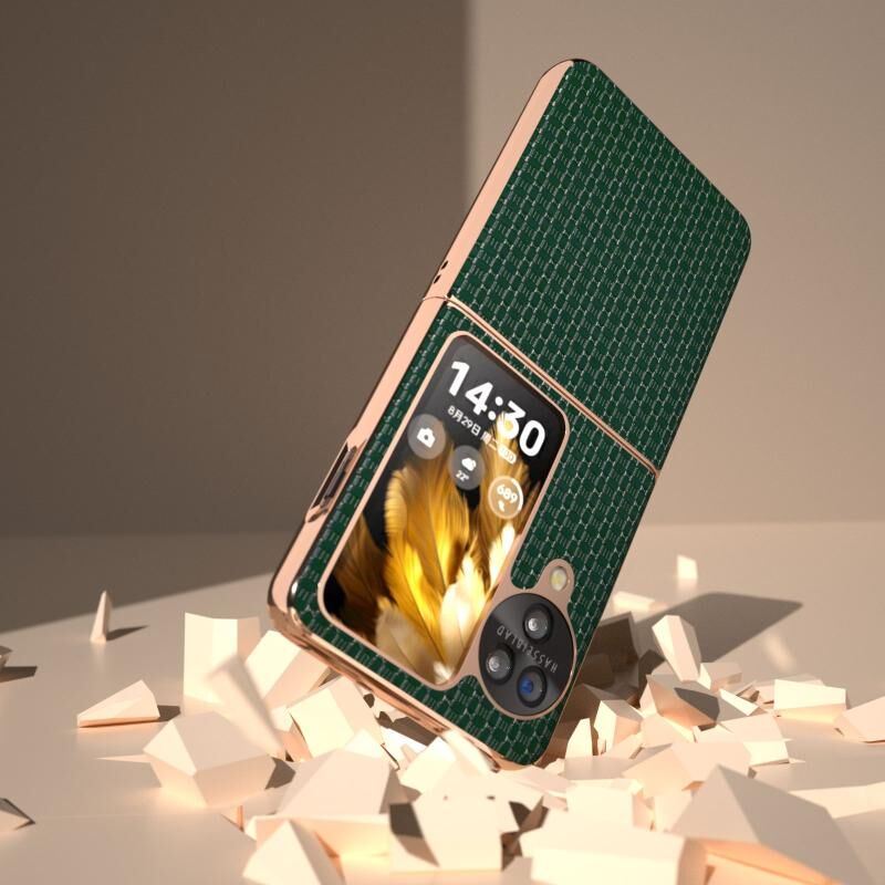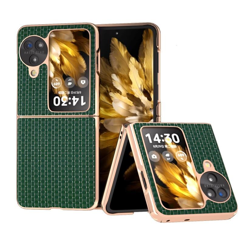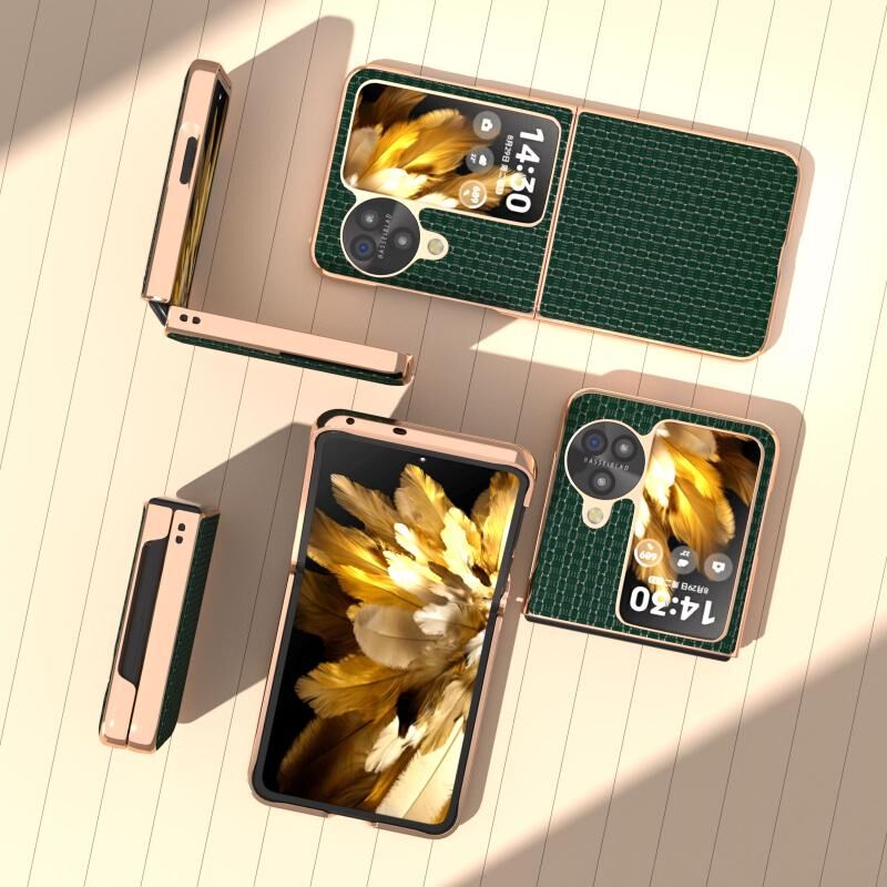 Θήκη τηλεφώνου από γνήσιο δέρμα πολυτελείας Nano Plating για OPPO Find N3 Flip (Πράσινο της νύχτας)