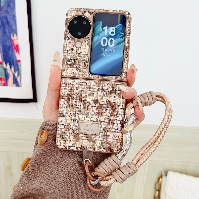 Για OPPO Βρείτε N3 Flip Illusory χρώμα Weaving Υφή τηλέφωνο υπόθεση με το χρώμα λουράκι (Καφέ)