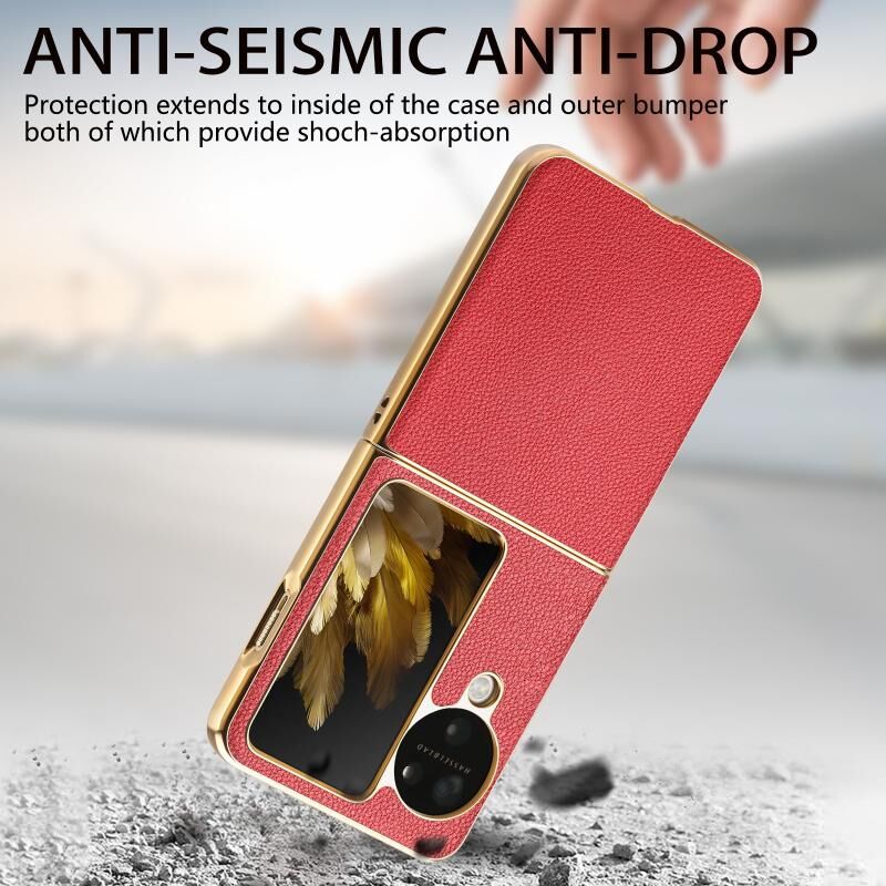 Για OPPO Βρείτε N3 Flip Litchi δέρμα Electroplating Shockproof τηλέφωνο υπόθεση (Κόκκινο)